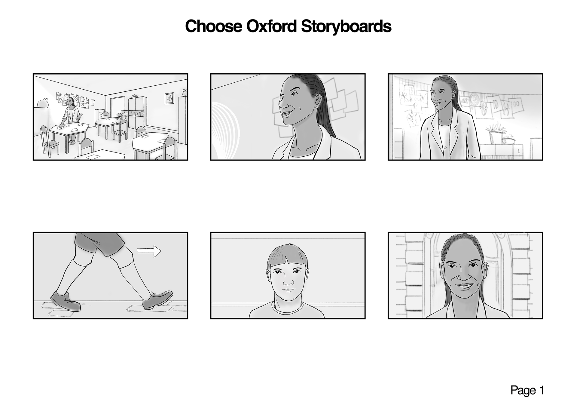 A storyboard for a series of videos each set in a different country that explores the English language test in twenty-one markets. This particular video is set at a school in the Czech Republic.