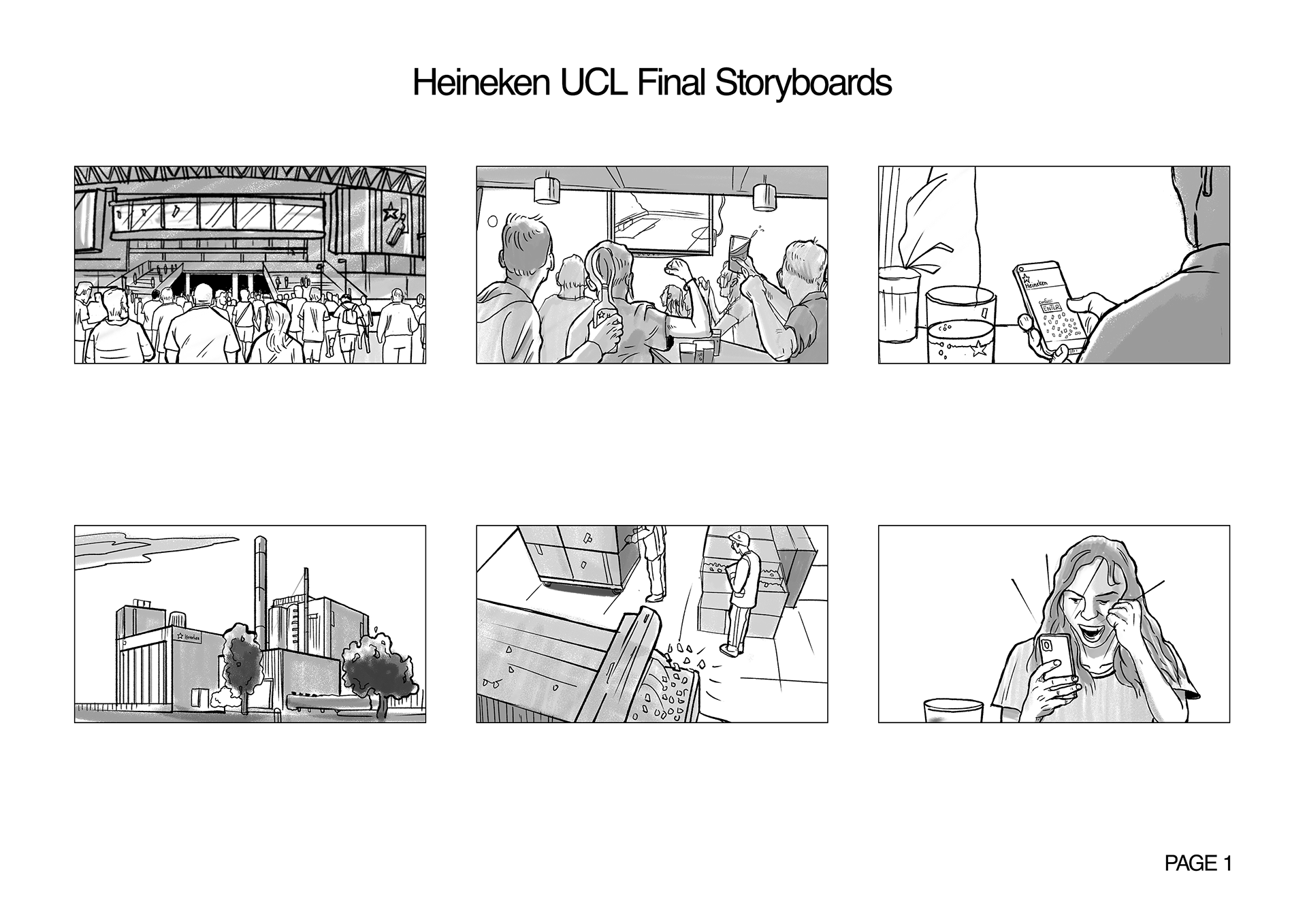 Client storyboards I did a while back, showcasing Heineken celebrating their fans by printing their faces onĀ